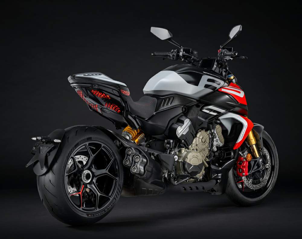 | Standard Equipment: | Ducati Quick Shift, Ducati Power Launch, Cruise control, Hands-Free, 5″ TFT colour display, Ducati Multimedia System, Backlit handlebar switches, Full-LED lighting system, Dynamic turn indicators |