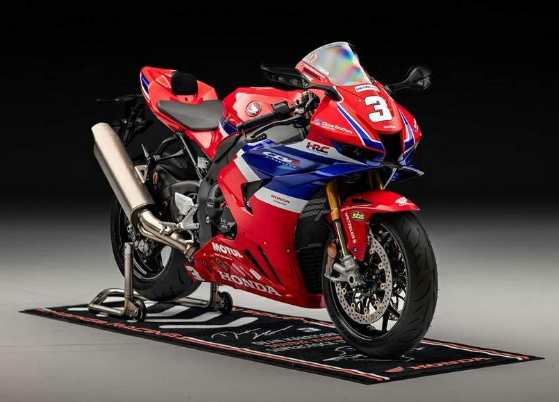 Honda CBR1000RR-R Fireblade SP Harrison Replica is produced in 2025. Engine is Four stroke, transverse 4 cylinder, DOHC, 4 valves per cylinder, displacement 999.9 cc / 61 cu-in , produces power 215 hp / 160kW @ 14000 rpm and 113 Nm / 82.6 lb-ft @ 12500 rpm. Honda CBR1000RR-R Fireblade SP Harrison Replica wet weight is 202 kg / 445 lbs. Honda CBR1000RR-R Fireblade SP Harrison Replica has 6 photos.