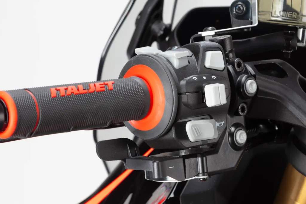 | Rear Suspension: | Spring-preload adjustable Marzocchi piggyback-reservoir shock with Italjet Stiffness Adjustment System (ISAS) |