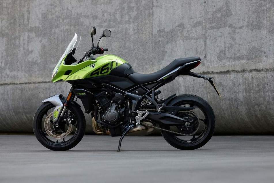 Triumph Tiger Sport 660 is produced in 2026. Engine is Four stroke, transverse three cylinder, DOHC, 4 valves per cylinder, 240? firing order, displacement 660 cc / 40.2 cu-in , produces power 95 hp / 70 kW @ 11250 rpm and 68 Nm / 50.2 lb-ft @ 8250 rpm. Triumph Tiger Sport 660 wet weight is 211 kg / 465 lbs. Triumph Tiger Sport 660 has 6 photos.