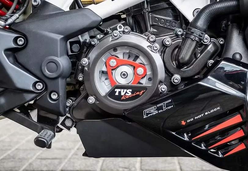 TVS Apache RTR 310 is produced in 2025. Engine is Four stroke, single cylinder, reverse inclined, SOHC, 4 valves, displacement 312.2 cc / 19.1 cu in , produces power Sport & Track mode: 26.5 kW / 35.6 hp @ 9700 rpm Urban & Rain mode:20.2 kW / 27.1 hp @ 7600 rpm and Sport & Track mode: 28.7 Nm / 21.2 lb-ft @ 6650 rpm Urban & Rain mode: 27.1 Nm / 20.1 lb-ft @ 6600 rpm. TVS Apache RTR 310 wet weight is 169 kg / 373 lbs. TVS Apache RTR 310 has 4 photos.